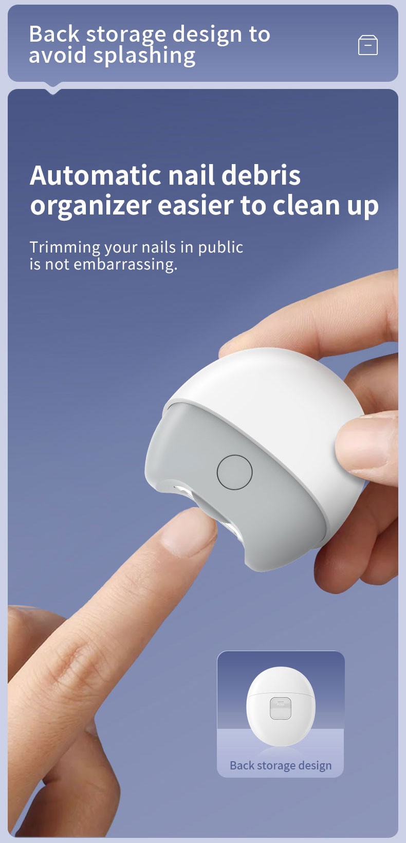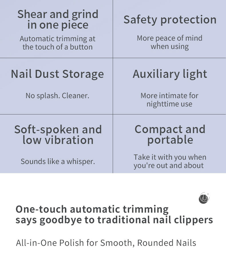 The electric nail clipper is a remarkable innovation in personal care. It features a cordless and rechargeable design, allowing for convenient use anywhere. With a stainless steel blade and adjustable settings, it offers precise cutting. The ergonomic shape and non-slip grip ensure comfort and control. The LED light illuminates the cutting area, and a nail file attachment helps to smooth the edges. It is compact, easy to clean, and operates quietly. Whether for home or professional use, this electric nail clipper is a must-have tool for maintaining beautiful and healthy nails.