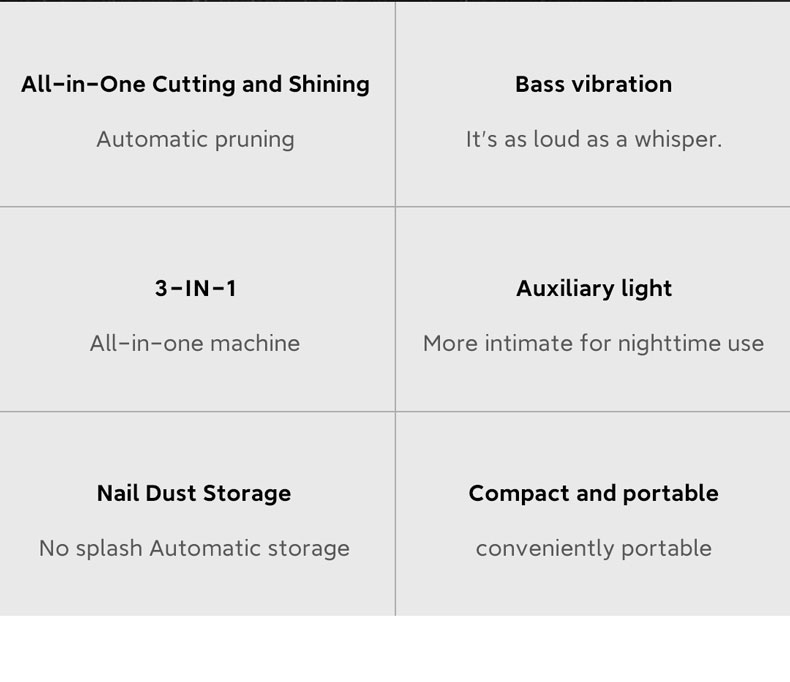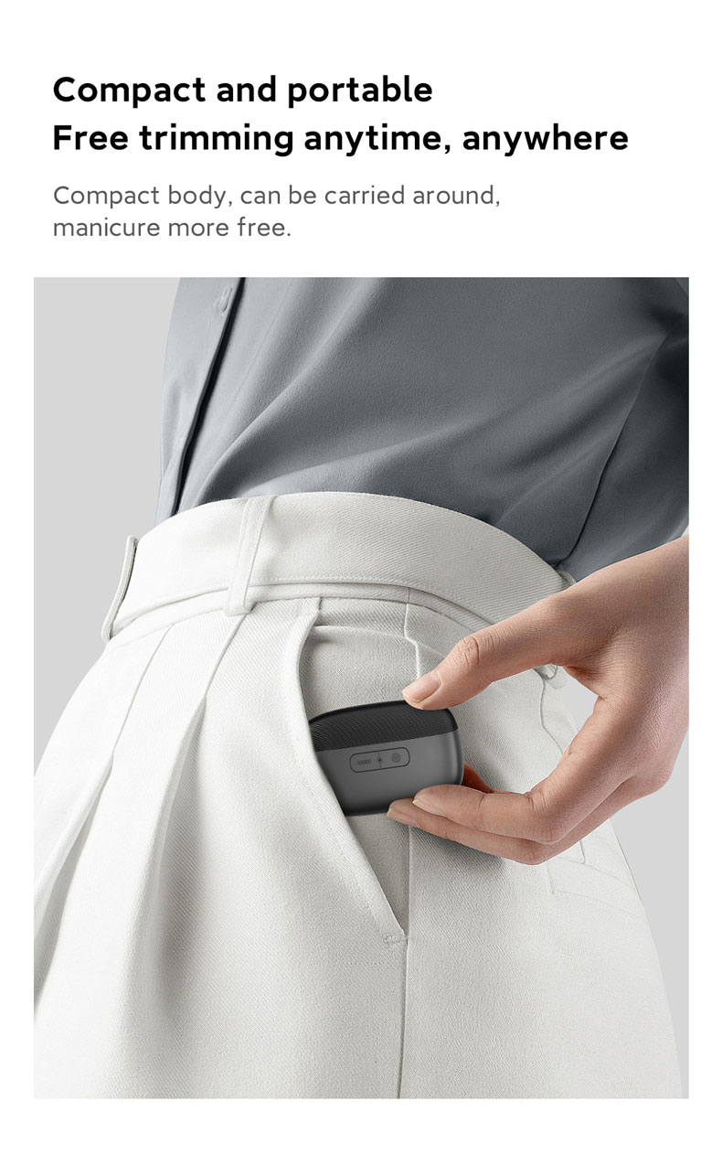 The electric nail clipper is a remarkable innovation in personal care. It features a cordless and rechargeable design, allowing for convenient use anywhere. With a stainless steel blade and adjustable settings, it offers precise cutting. The ergonomic shape and non-slip grip ensure comfort and control. The LED light illuminates the cutting area, and a nail file attachment helps to smooth the edges. It is compact, easy to clean, and operates quietly. Whether for home or professional use, this electric nail clipper is a must-have tool for maintaining beautiful and healthy nails.