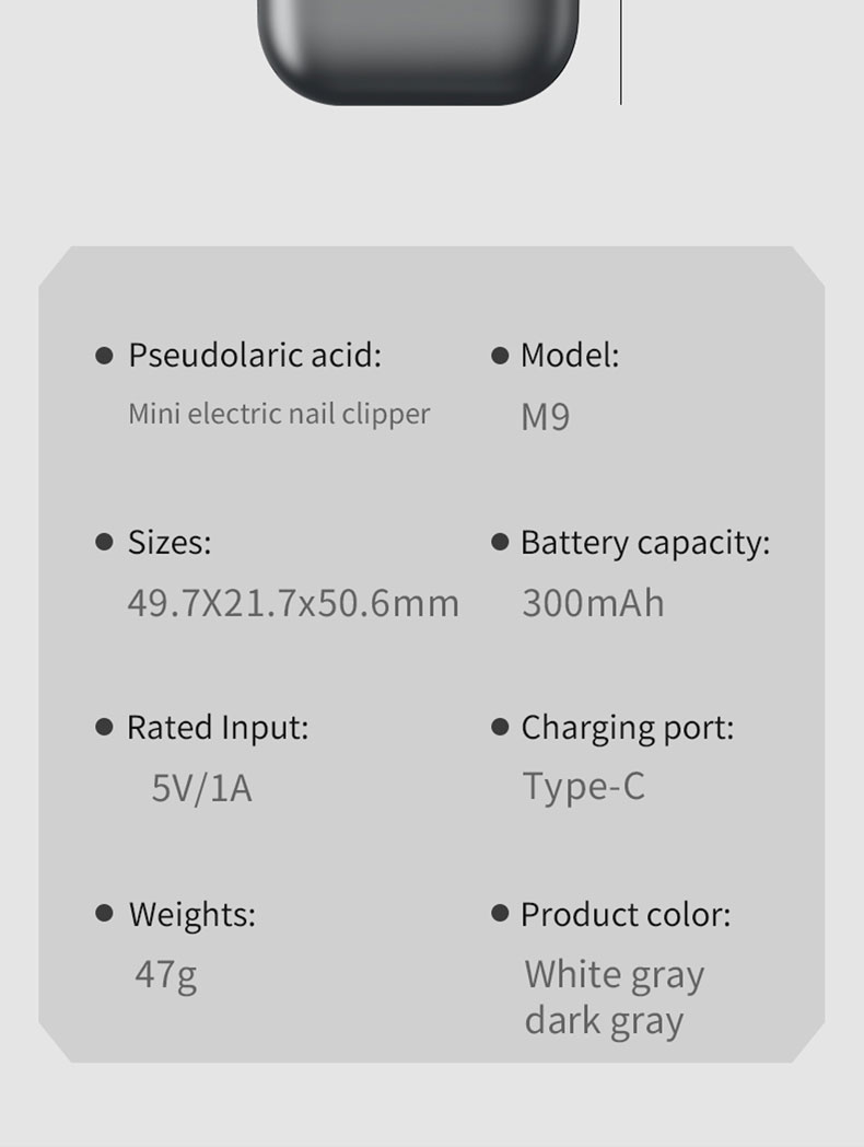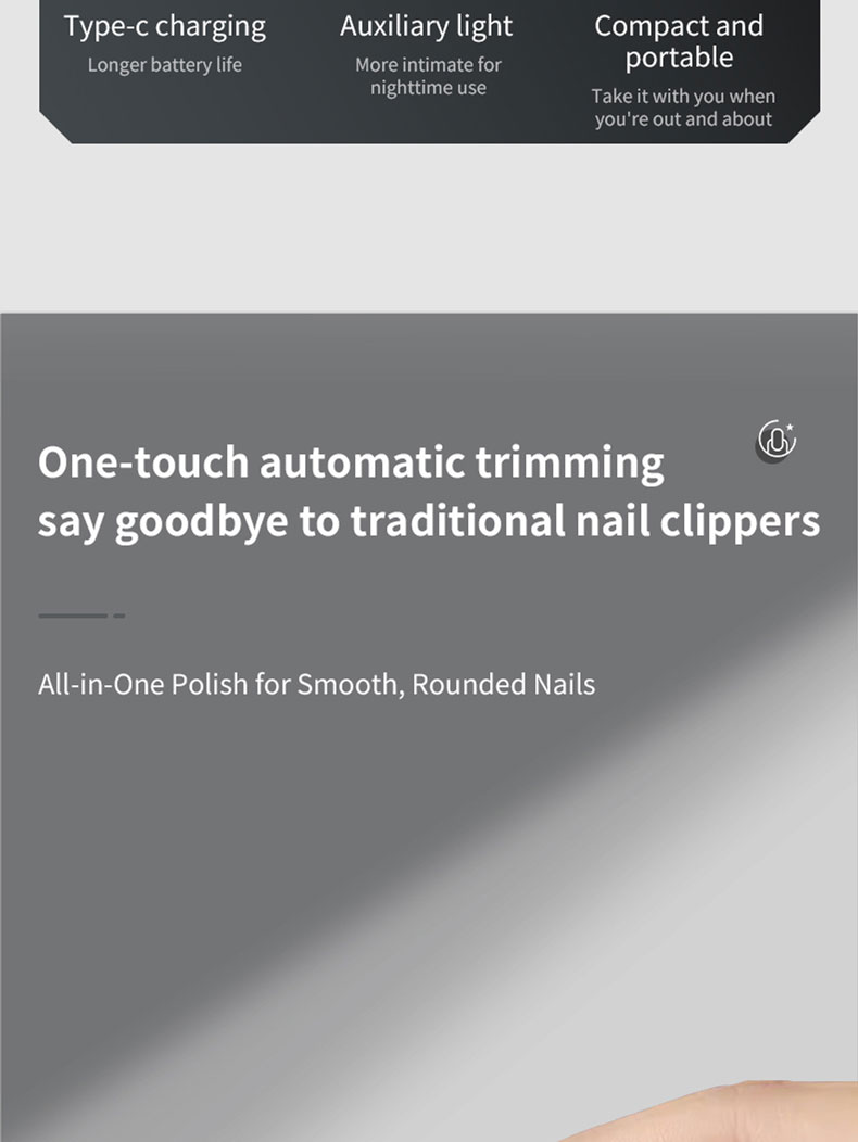 The electric nail clipper is a remarkable innovation in personal care. It features a cordless and rechargeable design, allowing for convenient use anywhere. With a stainless steel blade and adjustable settings, it offers precise cutting. The ergonomic shape and non-slip grip ensure comfort and control. The LED light illuminates the cutting area, and a nail file attachment helps to smooth the edges. It is compact, easy to clean, and operates quietly. Whether for home or professional use, this electric nail clipper is a must-have tool for maintaining beautiful and healthy nails.