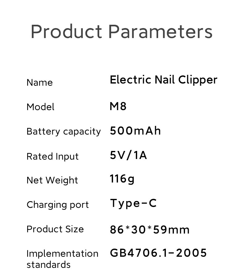 The electric nail clipper is a remarkable innovation in personal care. It features a cordless and rechargeable design, allowing for convenient use anywhere. With a stainless steel blade and adjustable settings, it offers precise cutting. The ergonomic shape and non-slip grip ensure comfort and control. The LED light illuminates the cutting area, and a nail file attachment helps to smooth the edges. It is compact, easy to clean, and operates quietly. Whether for home or professional use, this electric nail clipper is a must-have tool for maintaining beautiful and healthy nails.